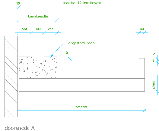 De hellingbaan wordt later opgestort; hierdoor heeft de beton aan de bovenkant van de hellingbaan het uiterlijk van glad gespaand beton en niet het uiterlijk van beton aan de malzijde.