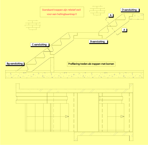 Voor beschikbare mallen voor een hellingbaantrap zonder bomen wordt u door gelinkt naar de mallenlijst Trappen zonder bomen